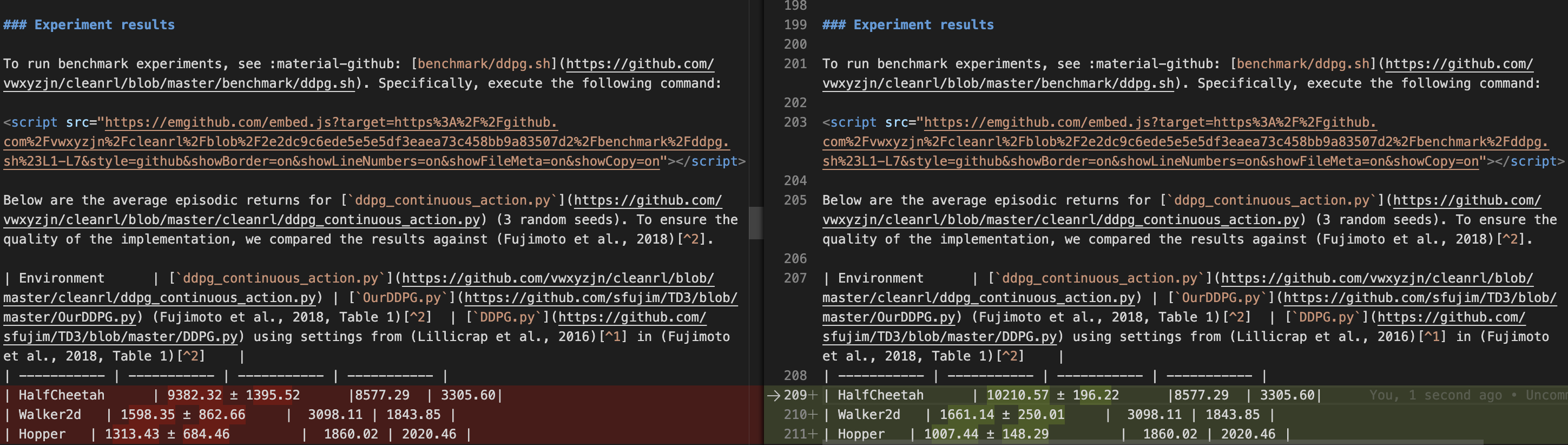 openrlbenchmark/cleanrl/ddpg_continuous_action ({'tag': ['pr-299']}) | openrlbenchmark/cleanrl/ddpg_continuous_action ({'tag': ['rlops-pilot']}) | |